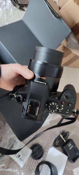Het pakket kwam ook op tijd aan en bevatte de originele doos in de bubbelverpakking, een verpakking met de camera en een "zonnekap"-ring, 2 fotokaarten, een panasonic batterij en 2 "andere merken", evenals de oplader. Ik heb ook de volledige handleiding online gedownload; ik heb een paar opnamen getest met de verschillende modi en het is OK ... Alles wat ik nog moet doen! Bedankt aan de verkoper voor de zorg.