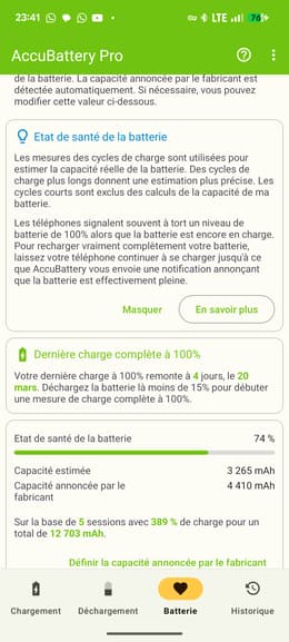 Sterker nog, ik had hem zonder problemen 5 sterren gegeven als het niet om de batterij was gegaan, die bij lange na niet de beloofde 85% had. Mijn app geeft me een capaciteit van 74% na 3 of 4 keer opladen van 10 tot 100% en dat vind ik jammer. Behoorlijk geïrriteerd eigenlijk, wat vinden jullie? Wat vinden jullie nog meer? Ik kan er niet echt iets op aanmerken, hij is in goede staat en werkt probleemloos.